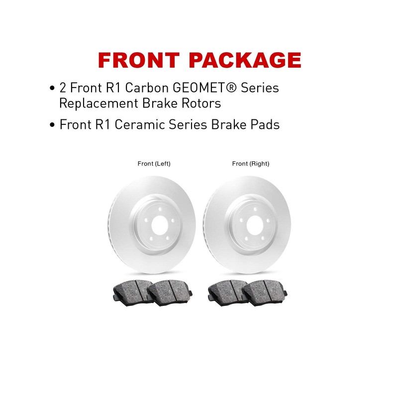 • All-in-One Complete Brake Kit Replacement: R1 Concepts Carbon Series Front & Rear Brake Kit comes with (2) high performance brake rotors and (4) performance brake pads.