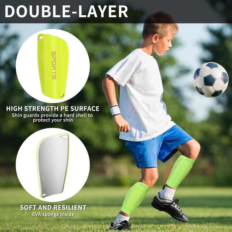 - ⚽【Comprehensive Protection】 The outer covering of the soccer shin guards is made of high strength PE hard shell, and there is a layer of EVA sponge inside. Soft and resilient. It can be used for comprehensive protection. 【M Size suitable for kids 5-13 Years Old】【L Size suitable for 13+ Years Old Teenagers and Adults】