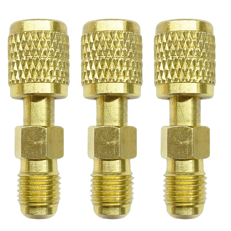 R32 R454B Refrigerant Brass Adapter, 1/4" Female to 1/4" Male Reverse Thread, Quick Connect Fittings for R32 R454B Refrigerant Tanks Mini Split Systems (3 PCS)
