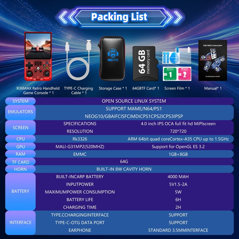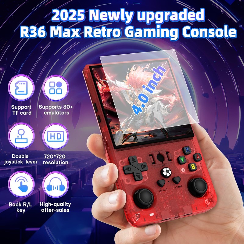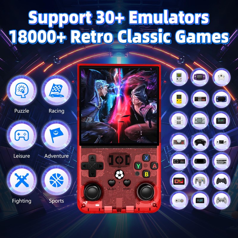 - 【R36 Max New System】 The handheld game console adopts open source Linux game system with good stability, which enables it to provide provides a more responsive and smoother experience. Pre-installed with 18000+ games, it supports 30+ mainstream simulators, and TF card independent system and game storage design allows for adding more games