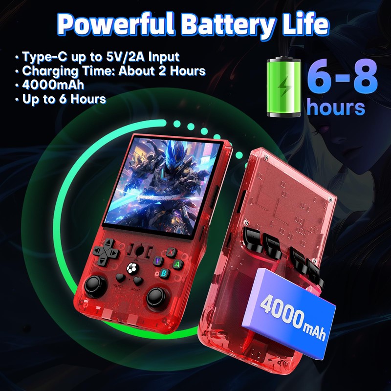 - 【4000mAh Large Capacity Battery】 Built-in 4000mAh large capacity lithium battery for ultra-long standby time and battery life. Support up to 6 hours game playing and only 2 hours charging time with USB Type-C cable. Brings lots of joy and happiness to you during a trip or a long journey
