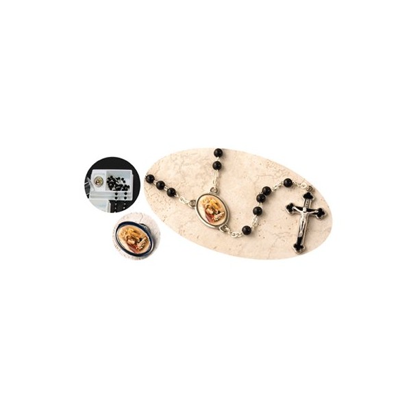 R704BK ROSARY FIRST COMMUNION BLACK WITH COMPANION PIN, 14.5" 4MM SFI