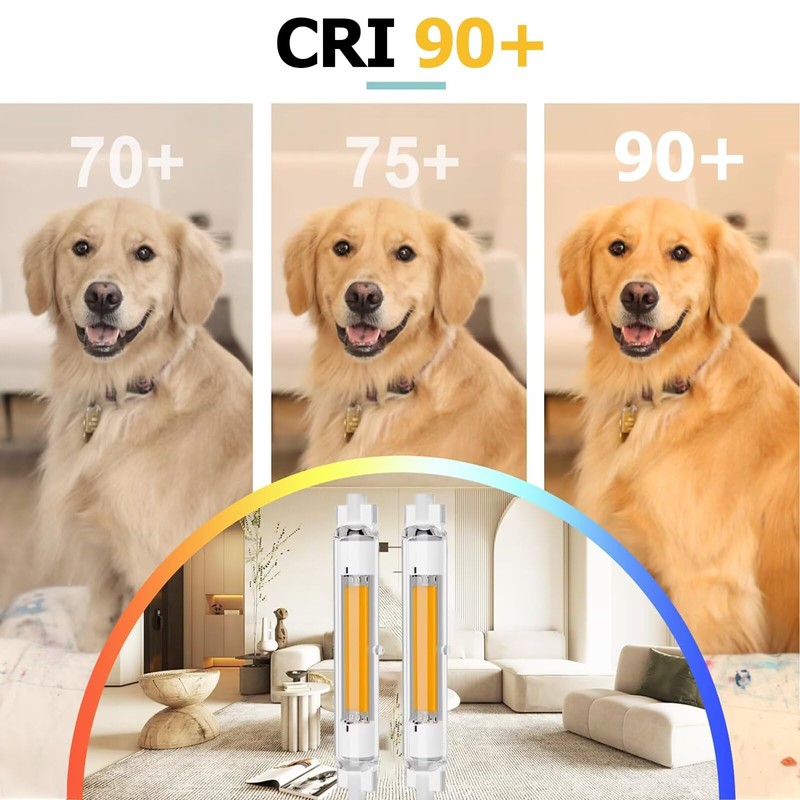 - Eye protection R7S light bulb: LED R7S provides a stable light source with soft and natural light, super high colour rendering index (CRI>90), objects become more vivid. This does not strain the eyes and largely excludes fatigue.