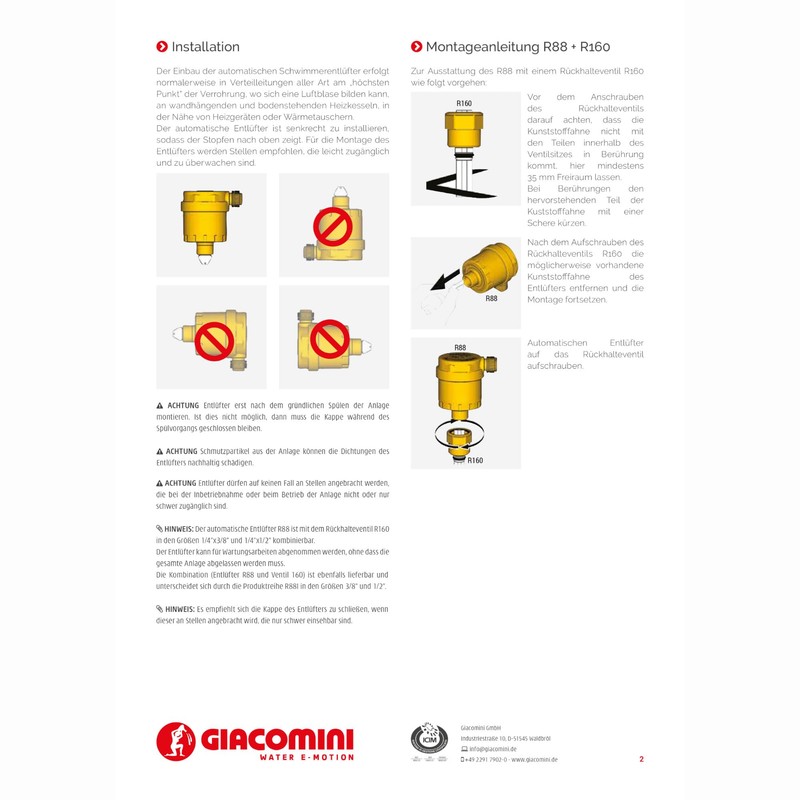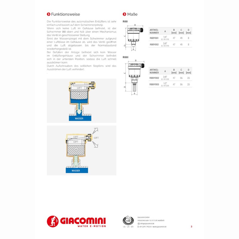 R88I Automatic Bleed Valve R88IY002 3/8" GIACOMINI