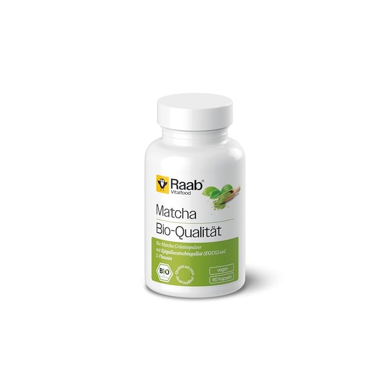Raab Vitalfood Bio Matcha-Kapseln, 60 Stück, Grüntee-Extrakt aus Japan, Premium Qualität, vegan, glutenfrei, grüner Tee, 1 Monat