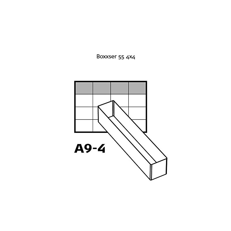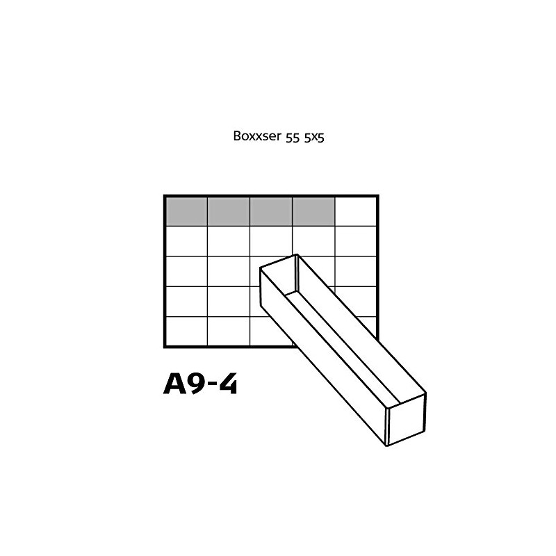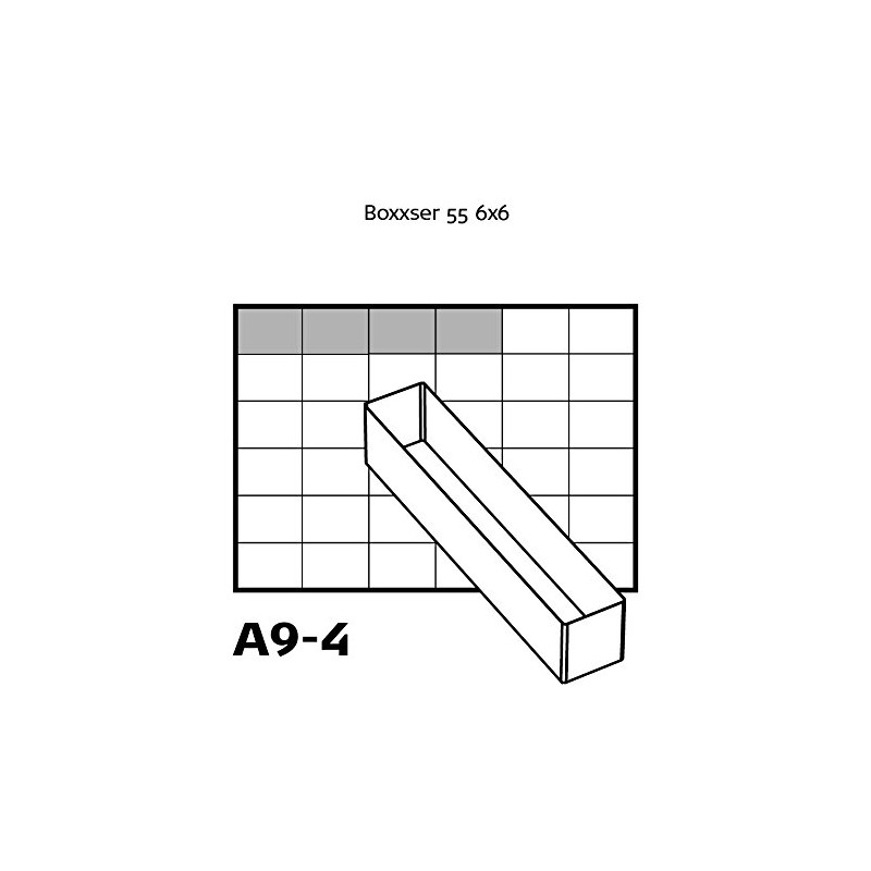 - The set consists of 4 pieces of 55 A9-4 inserts on a tray with profile grid that holds them securely in place. Dimensions of each tray (H x W x D): Internal 43 x 35 x 212 mm; Outer 47 x 39 x 218 mm.