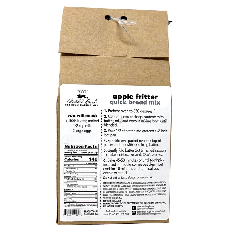 - Apple Fritter Quick Bread Mix - Rabbit Creek decadent bread mixes are delicious and simple to make. To make the bread, you will need butter, milk, and eggs. That’s it!