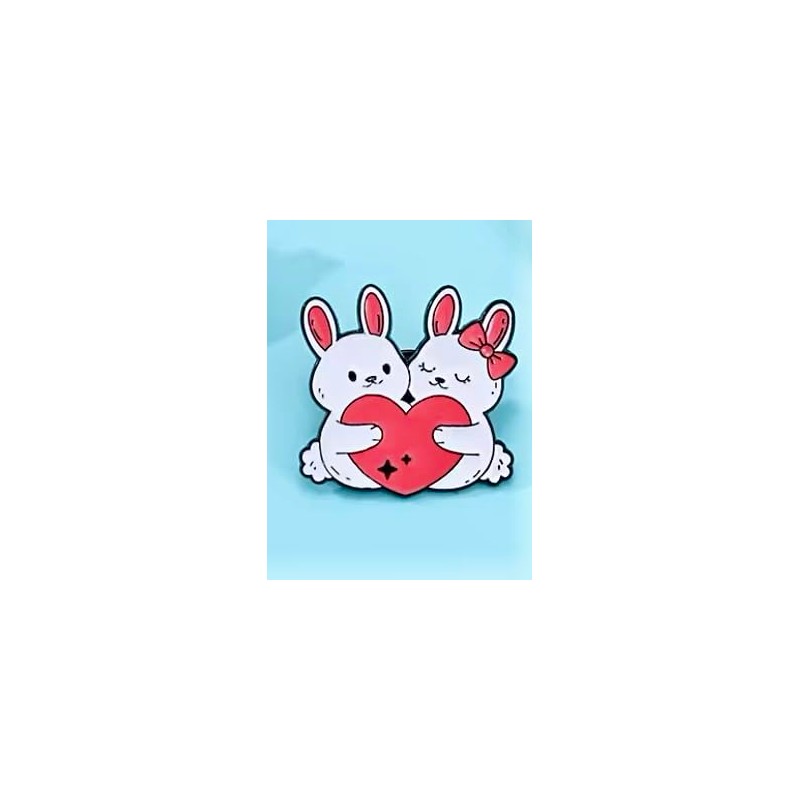 - Adorable Design: This charming enamel pin features two cute bunnies hugging a heart, perfect for animal lovers and those who appreciate whimsical accessories.