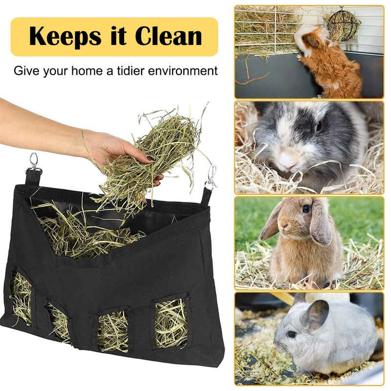 - 【Product Specification】:The feeding bag measures 46x30cm with four windows to keep your pets in order when eating and keep their cage clean and reduce waste. Ideal for rabbits, chinchillas, guinea pigs, guinea pigs or other small animals.