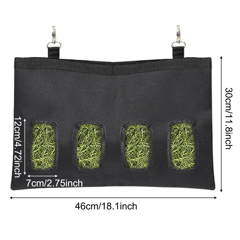 The hay bag is clean and tidy, easy to carry, waterproof and easy to wipe, can be used for hanging, Oxford fabric, very wear-resistant.