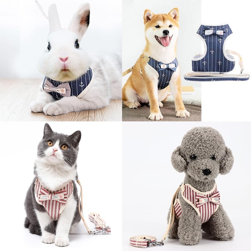 - Cute and Fashionable Rabbit Chest Harness: A cute pet harness specially designed for bunnies, as the main color, the fabric is printed with anchor to make your rabbit look more adorable and become the center of attention