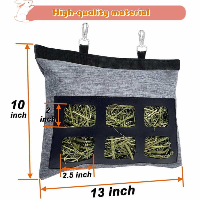 - [Upgraded Design]: The rabbit hay feeder bag, providing sufficient hay supply for your rabbit pets,more holes design is for more efficient feeding for bunny or guinea pigs, chinchillas,in the daily needs or replacements.