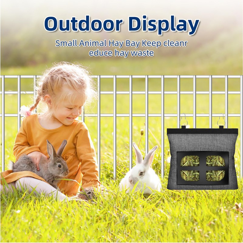 • 2. 4 generous hole design: The 4 hole design makes the amount of hay in the hay bag very clear, you can find whether the hay stored in the bag is sufficient, and it is easy to replenish in time, while providing 3 to 4 rabbits to eat grass, easy to control the amount of hay, so that your rabbit has enough hay.