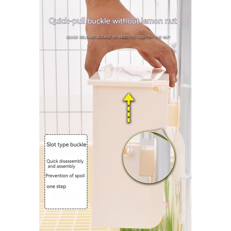 - Easy to installe :Quipped with a fixing buckle, it can be fixed to cages with gaps greater than 0.39 inches (1 centimeter) but less than 1.57 inches (4 cm) to prevent upset.