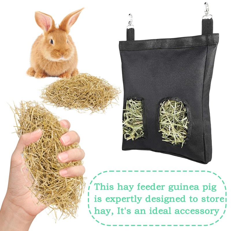 • High Quality Material: The hay bag for rabbits is crafted from 600D high quality oxford cloth material, With reinforced edges around the holes. This construction ensures the durability of the hay bag