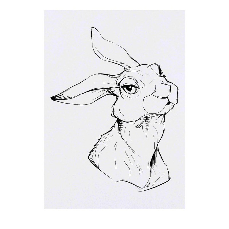 'Rabbit Portrait' Temporary Tattoo - Water Resistant, Skin-Safe, Non-Toxic Transfer (TO00085757)