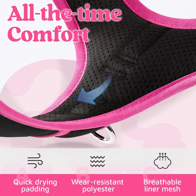 - Enjoy the Ease: Made of skin-friendly air mesh, this dog vest gives your pup comfort in any weather. The soft cushioning protects your dog's sensitive skin, and the widened top handle ensures a great holding experience