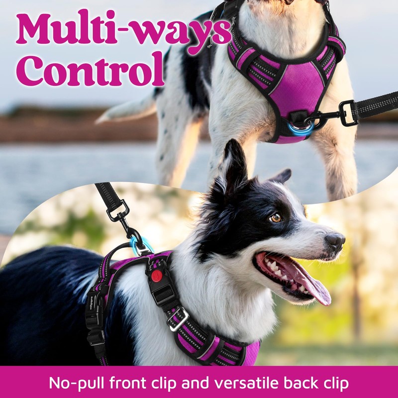 • Different Control Options: The widened top handle provides additional support whenever needed. Besides, there are two sturdy leash clips on the front chest and back for confident control in outdoor activities like daily walks and jogging
