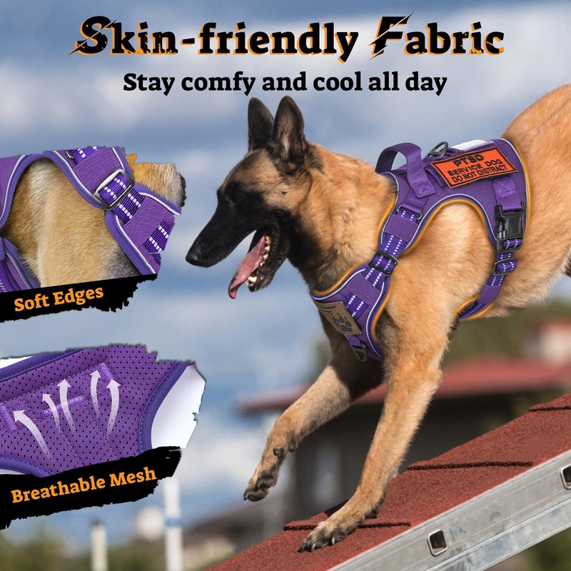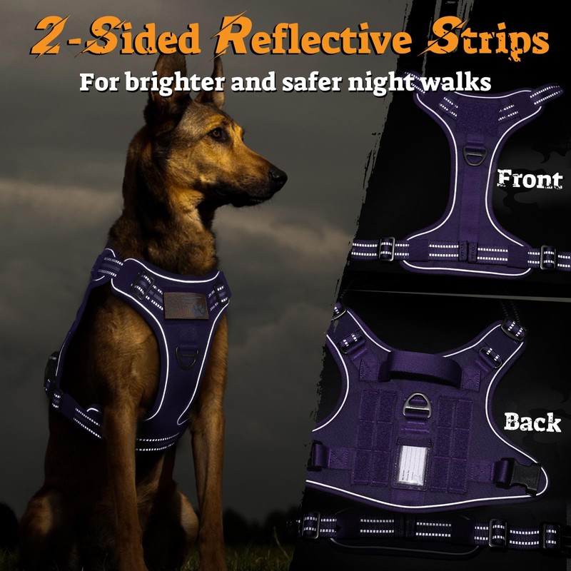 - No-Pull and Control: The harness has 29 leash attachment clips, including a metal front clip for no-pull running and a daily back clip for casual jogging. The large padded handle offers comfortable real-time control in an emergency