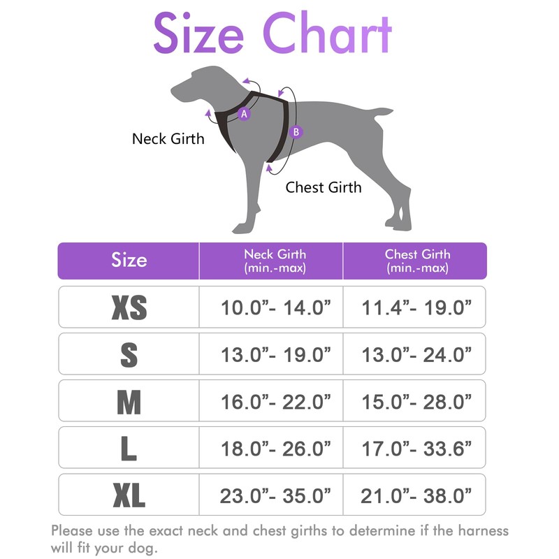- Fully Adjustable - This adjustable harness features 4 easy adjusting straps around the body. You can use its 2 neck straps and 2 chest straps to create a perfect fit for your dog with some room of growth. No worries about slipping out or choking