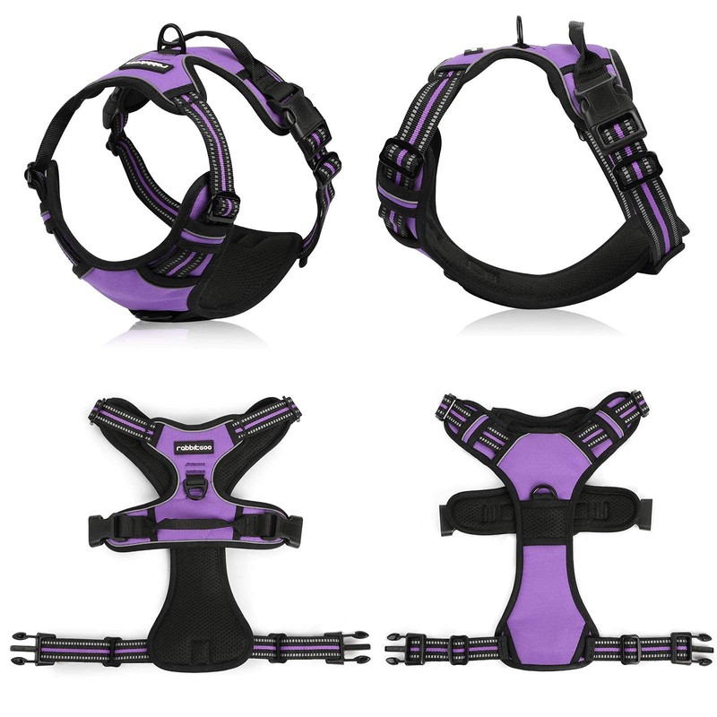 rabbitgoo Dog Harness, No-Pull Pet Harness with 2 Leash Clips, Adjustable Soft Padded Dog Vest, Reflective No-Choke Pet Oxford Vest with Easy Control Handle for Large Dogs, Purple, L