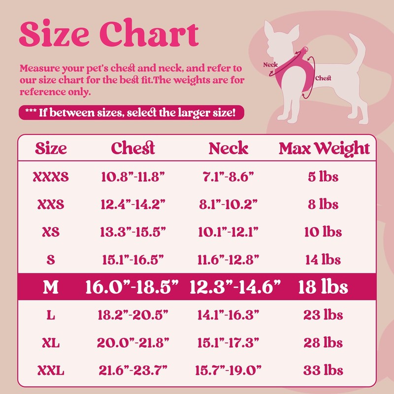 - Small Sized Harness: Not recommend for large dogs. To ensure snugly fit, please measure your pet with our direction and refer to our size chart before purchasing. Sizing does not directly correspond to your pet's breed or weight