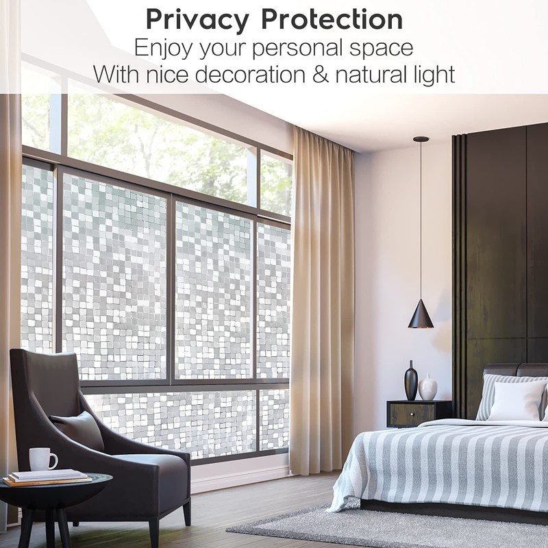 - Mosaic Pattern, Stylish Decoration: This privacy window film with specially designed mosaic pattern, which will create a visual effect under the sunlight and bring elegant and beautiful decoration to your home. Transform your personal space with minimal cost, an economical alternative to expensive heavy curtains or blinds