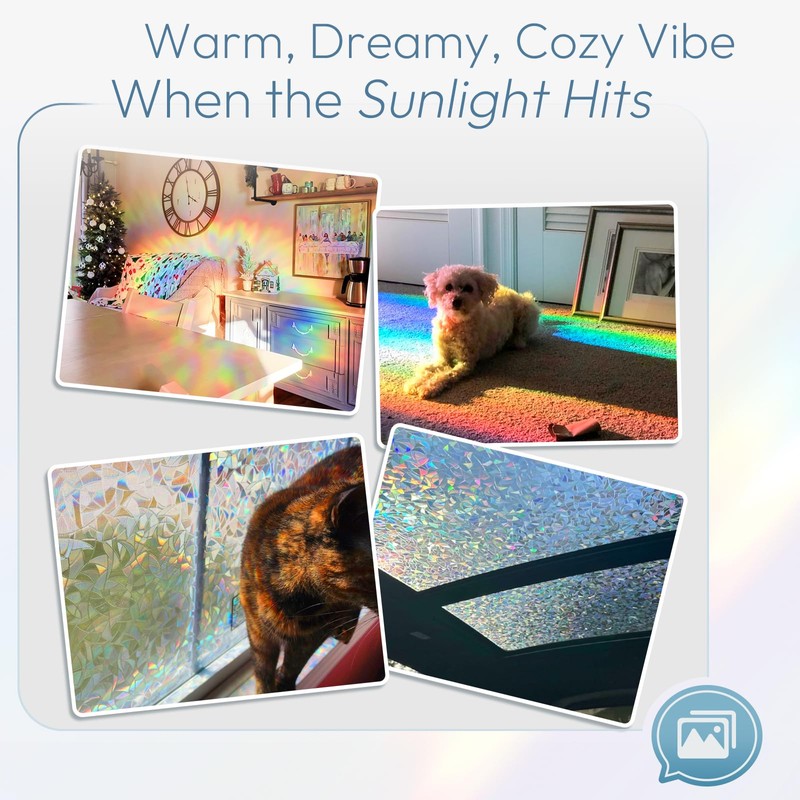 • Windows That Wow: Turn your windows into stunning suncatchers! Featuring advanced 3D etching technology, this window film creates mesmerizing color reflections under sunlight or indoor lighting, adding a stained glass-inspired charm to elevate your home decor