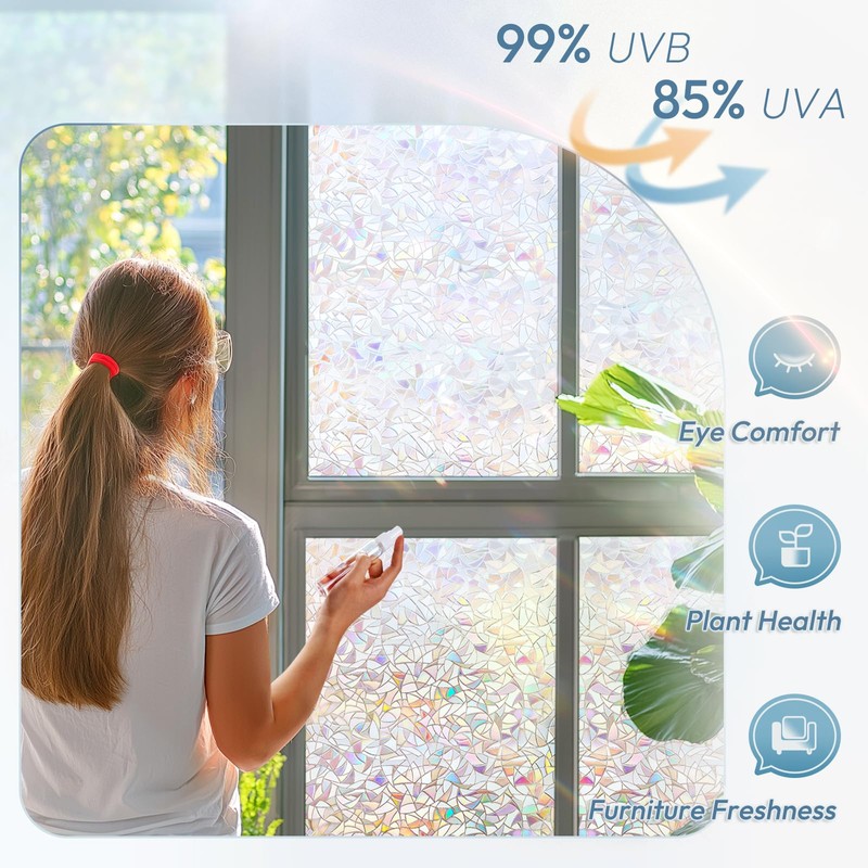- Windows That Wow: Turn your windows into stunning suncatchers! Featuring advanced 3D etching technology, this window film creates mesmerizing color reflections under sunlight or indoor lighting, adding a stained glass-inspired charm to elevate your home decor
