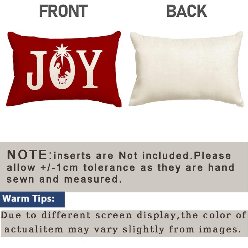 RABUSOFA Christmas Pillow Covers 12x20 Inch Red Christmas Decorations Joy Decorative Throw Pillows Christian Nativity Jesus Lumbar Cushion Covers Outdoor Winter Pillow Cases for Couch Holiday Xmas