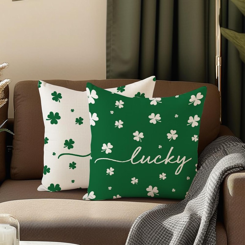 - Shamrock throw pillows Great addition for St Patricks Day spring decorations:pillow covers are very vivid and POP.cute Shamrock patterns make your room lively.