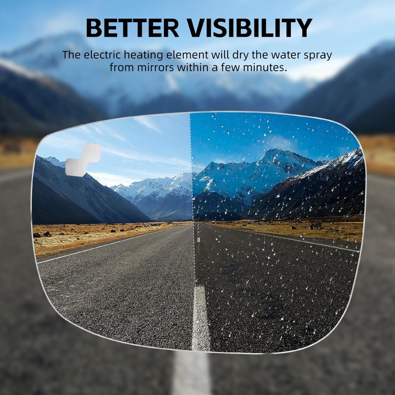 - BETTER VISIBILITY: Made of quality ABS plastic and HD convex glass. The electric heating element will dry the mirrors within a few minutes and keep a clear vision even in rainy or snowy conditions