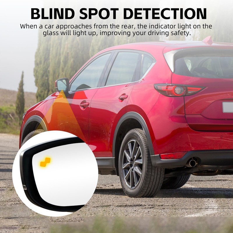 RACBOX Driver Side Mirror Glass Compatible with M-azda CX5 2017-2023, CX9 2016-2023, Convex Rearview Heated Mirror Glass Replacement with Blind Spot Detection, with Backing Plate