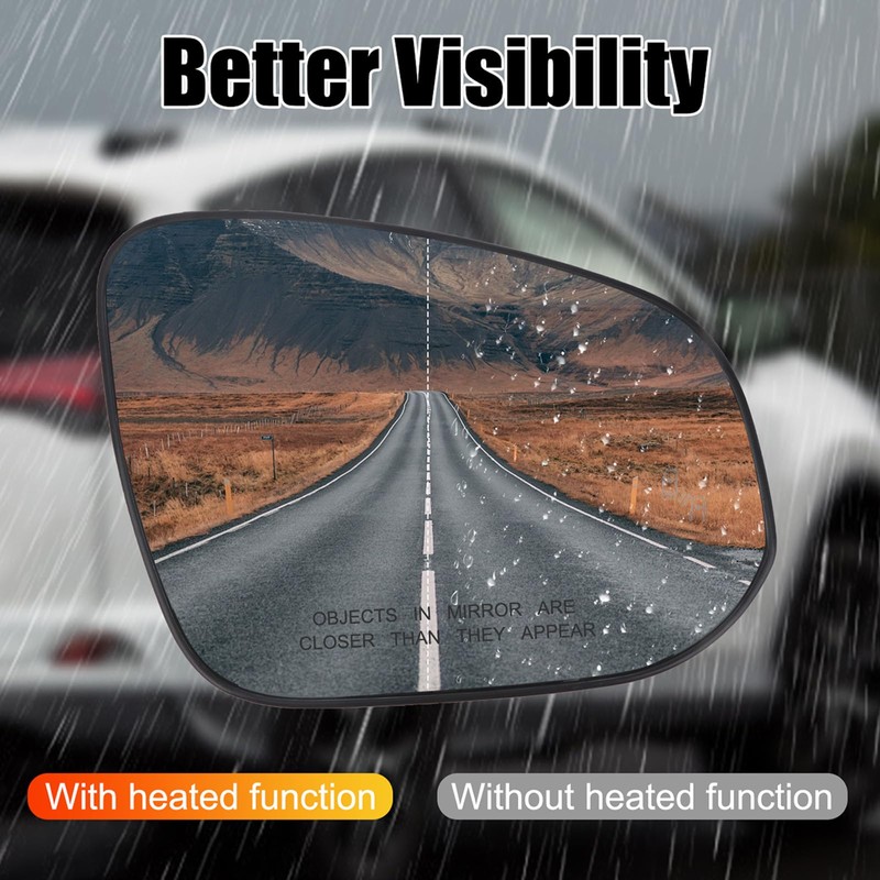 - BETTER VISIBILITY: Made of quality ABS plastic and HD convex glass, ensures a long service life. The electric heating element will dry water spray from mirrors within a few minutes and keep a clear vision during driving.