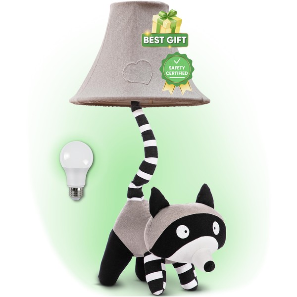 - Soft Lighting for Bedroom: this kids' lamp is perfect for raccoon room decor for boys and girls; it includes an energy-efficient E26 LED bulb, providing warm light and safety as it emits minimal heat—ideal as a bedside lamp for cozy decor.