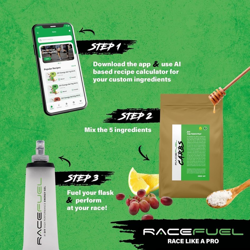 RACEPACE RaceFuel Foldable 250 ml Water Bottle Gel Bottle, Soft Flask BPA-Free, with RaceFuel Energy Gel Recipe QR Code, Perfect for Running, Marathon, Triathlon and Cycling (3 Pieces, 250 ml)