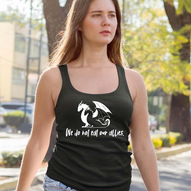 Racerback We Do Not Eat Our Allies Fourth Wing Basgiath Large Black Ladies Tank Top