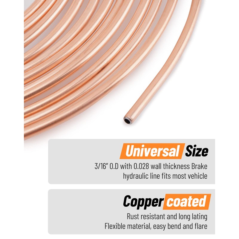 - RUST AND CORROSION PROOFING:Our 3/16 Copper coated steel line are the longest lasting brake line and much better than standard steel tubing. Copper coated brake line are ideal for vehicles experiencing harsh weather and environmental conditions