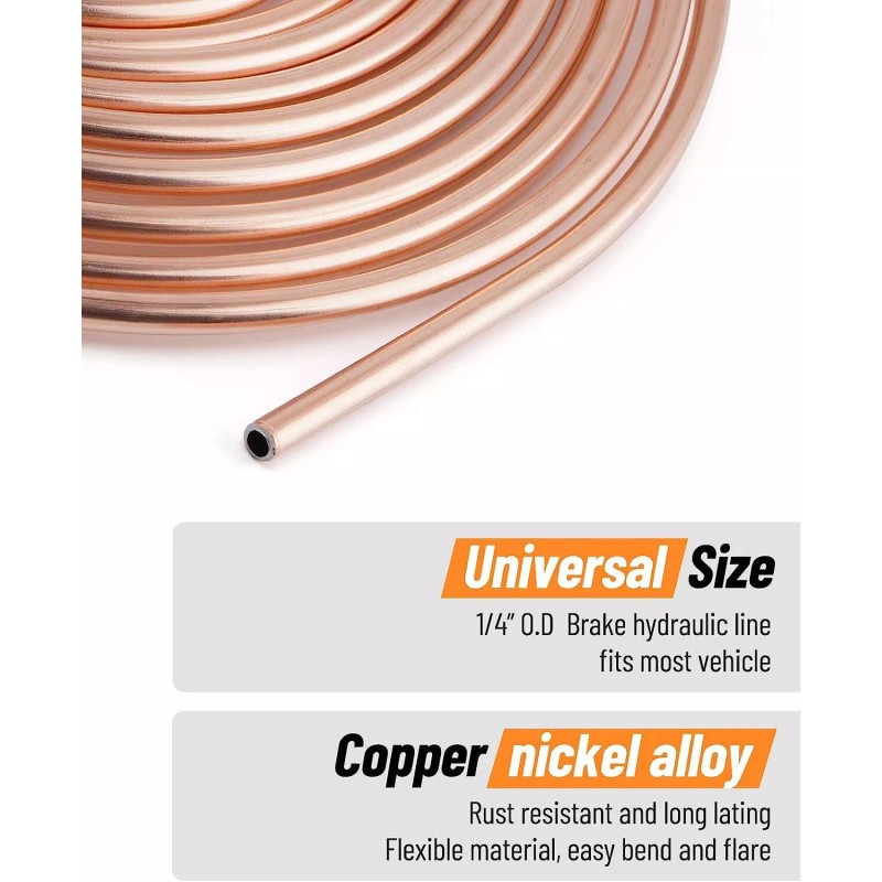 - RUST AND CORROSION PROOFING:Our 1/4 Copper coated steel line are the longest lasting brake line and much better than standard steel tubing. Copper coated brake line are ideal for vehicles experiencing harsh weather and environmental conditions