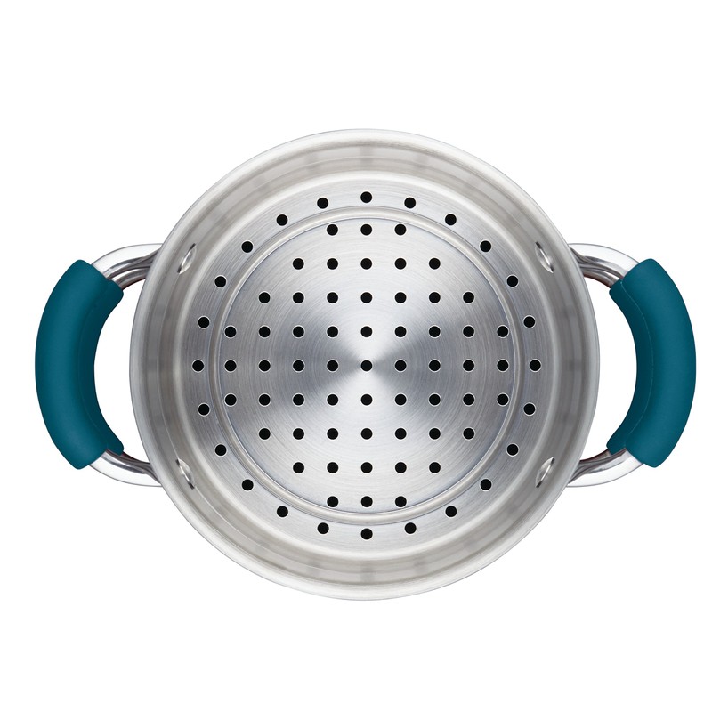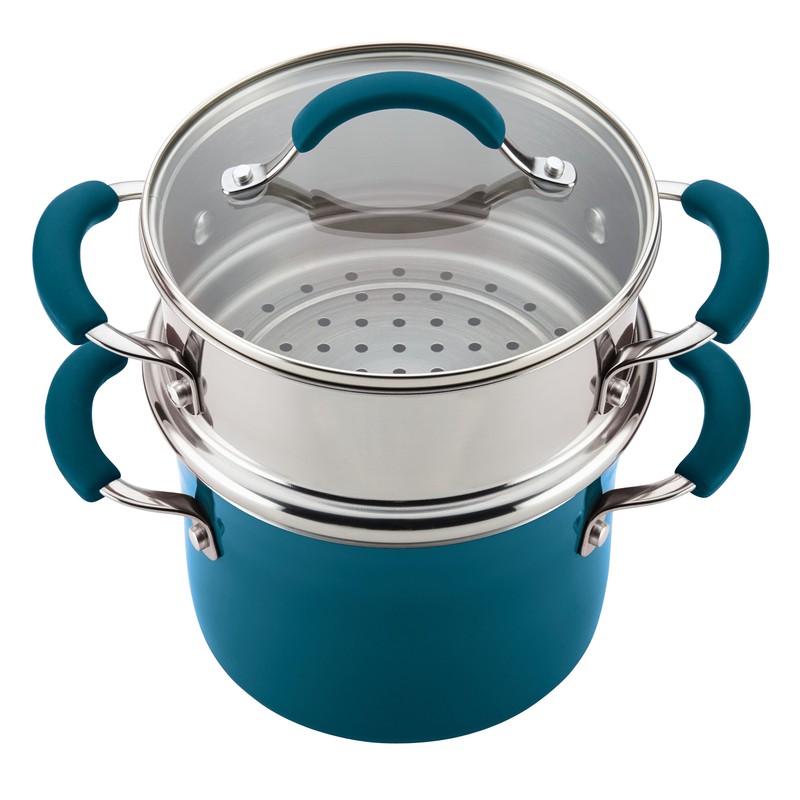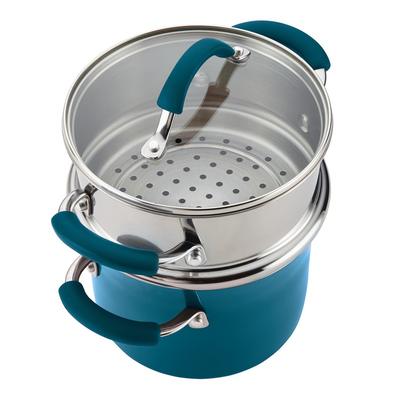 Rachael Ray Brights Sauce Pot/Saucepot with Steamer Insert, 3 Quart, Marine Blue Gradient