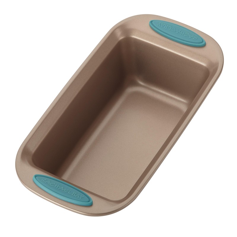 - Detalles del producto: Rachael Ray Yum-o. Bakeware Oven Lovin' molde antiadherente para pan, 22,8 x 12,7 cm, construcción de acero, marrón con asas azules Agave.