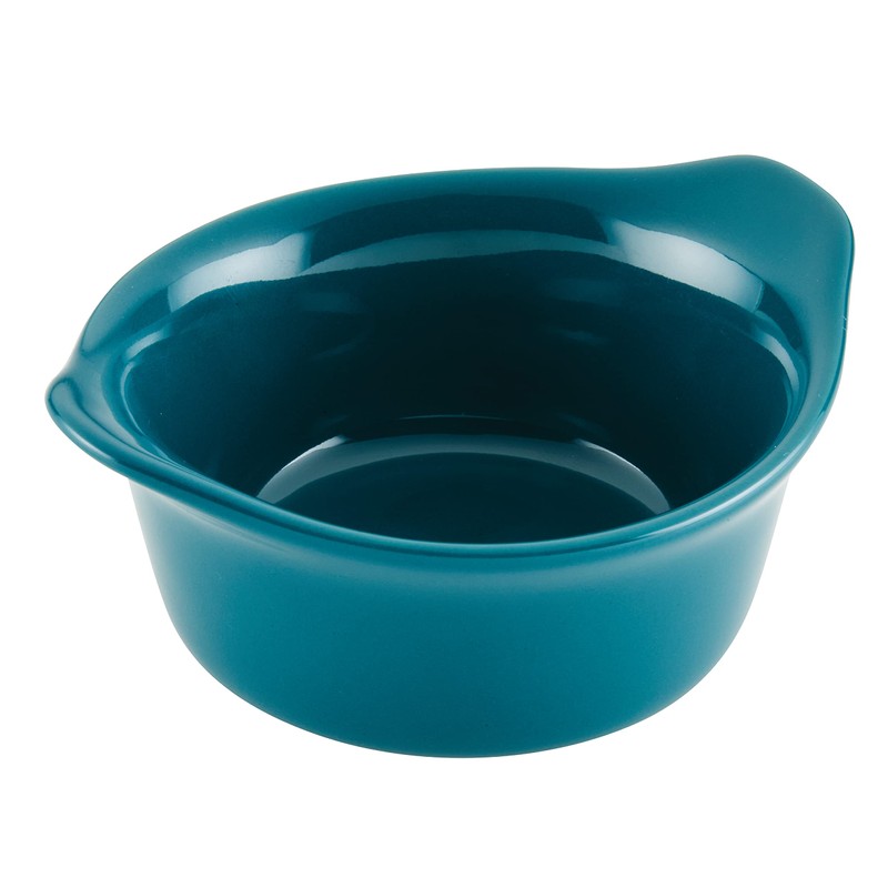 Rachael Ray Solid Glaze Ceramics Round Ramekins/Dipping Cup Set, 4 Piece, Teal
