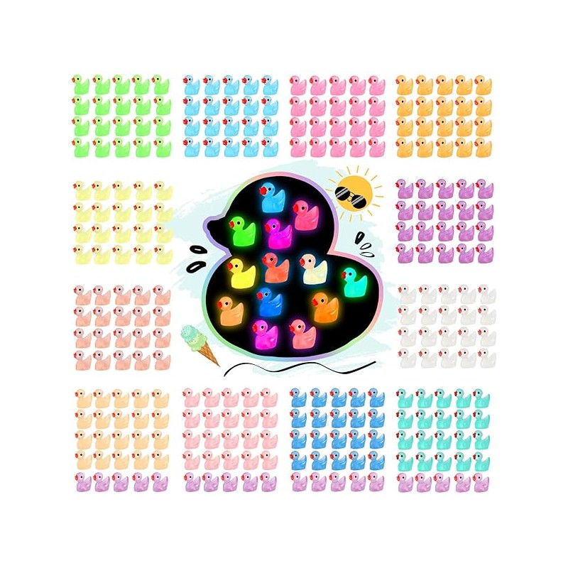 Rachan130 Pcs Luminous Mini Resin Ducks Glow in The Dark Tiny Duck Figurines for Miniature Landscape Garden Aquarium Potted Home Prank Game Dollhouse Decor Office Decompression