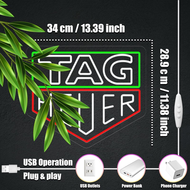 - Racing-Inspired Design: Licensed LED neon wall sign with classic T@gheuer shield, ideal for collectors and auto racing fans.