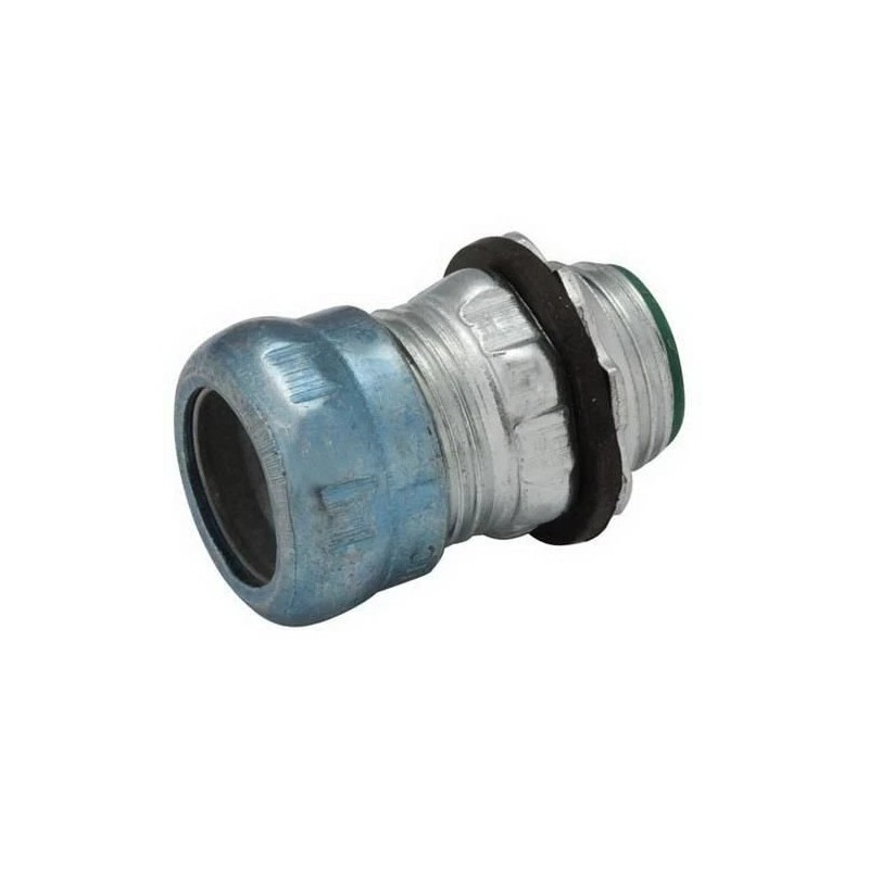 Compression Conduit Connector, Steel, Trade Size 1/2 in, Overall Length 1 17/32 in, Finish Zinc Plated, Insulated Yes, Compatible Conduit Type EMT, Conduit Fitting Type Connector, Standards cULus Listed, For Use With EMT, For Conduit Type EMT, Weight 0.1 lb, Color Black, Gray, Compatible Conduit Trade Size 1/2 in, Connection Type Compression, Includes Clamp, Rain Tight Yes