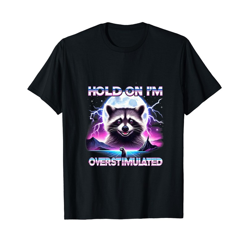 • "Hold On I'm Overstimulated" Mental Health Racoon Design is a funny and quirky tee designed to bring a smile to your face while spreading a positive message about mental health. Grab this design to show others that mental health is important.