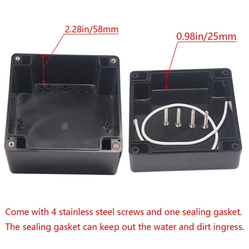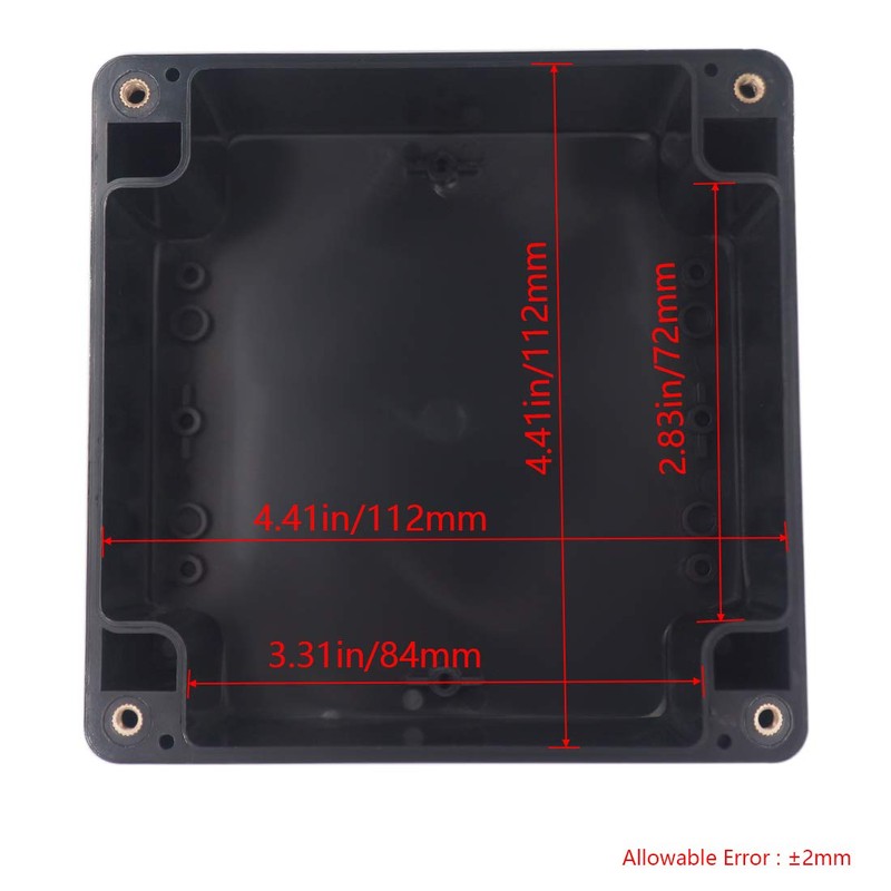- 【Waterprof Box Size】- Outer size of the Electrical Box: 4.72"x4.72"x3.54"(120 x120 x90 mm); Inner size of the Electrical Box:4.41" x4.41" x 3.27" (112 x112 x83mm)