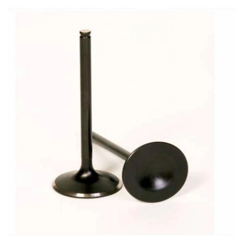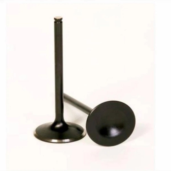 Stainless steel, forged one piece construction. Extremely light and fast flowing. Chromed stems and stellite tips. Special thick margins and modified radius. Fully swirl polished. Black nitride coating allows higher resistance to wear along with reducing friction for quicker and higher revs. Sold by piece.