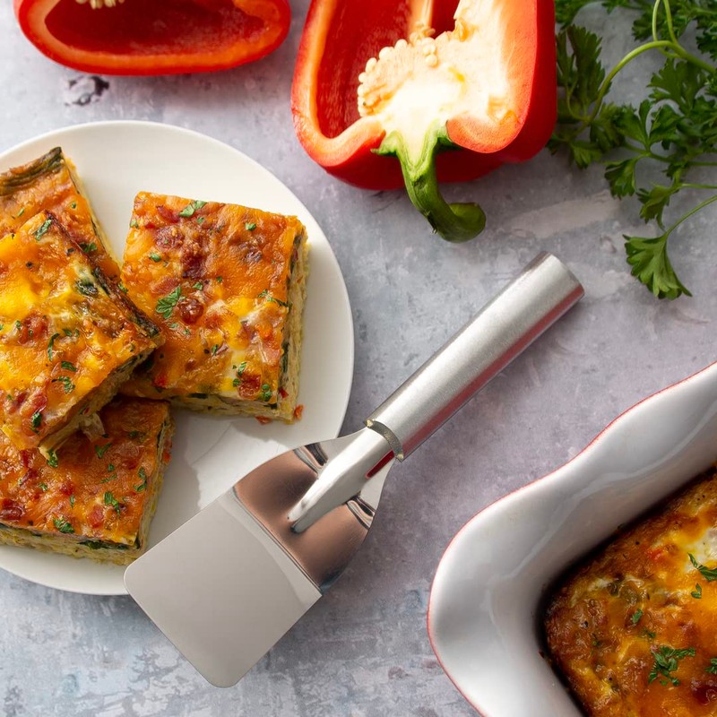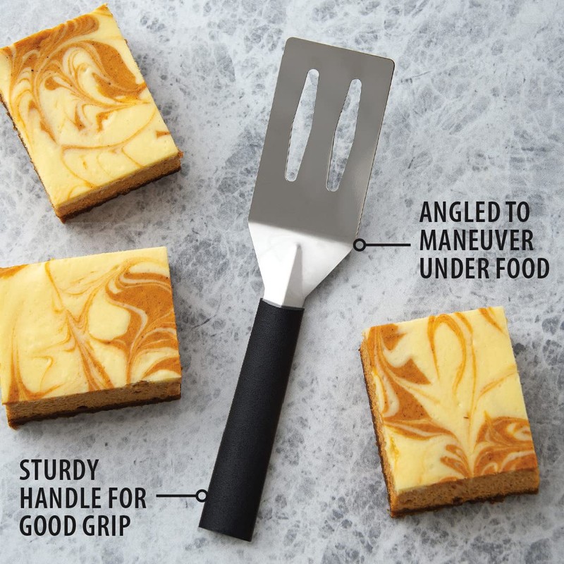 • Favored Uses: Maneuvers under sugar cookies to transfer them, and the angled base helps you remove dense pound cake or fudgy brownies from a cake pan