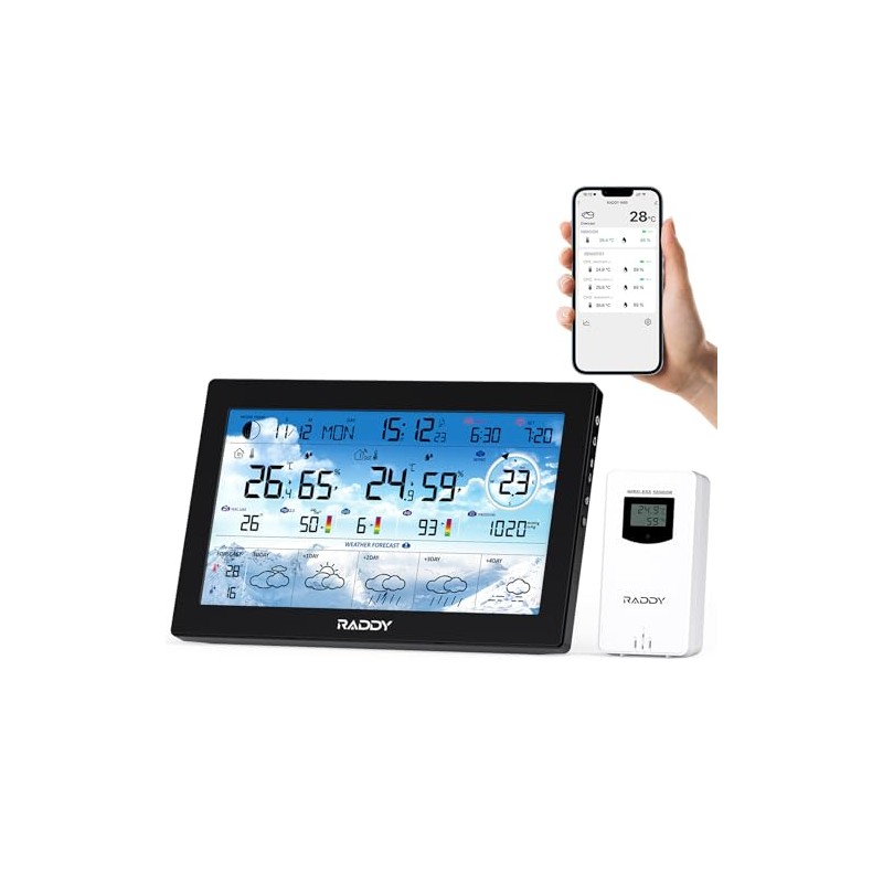 Raddy N90 Smart Wi-Fi Weather Station with APP Control, Indoor Outdoor Thermometer Wireless